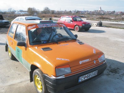 Intr-adevar este o masina de strada, dar am "adaugat" rollbar-ul si am schimbat motorul original cu unul de 1,4 cu injectie. Telescoapele si rotile sunt cele originale din fabrica. Asta nu m-a oprit sa imiating telul la fiecare cursa.